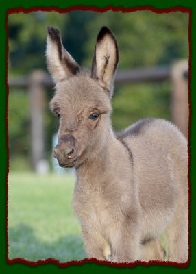 Sweet as they come, Elliot is looking for a forever home! He is another Turbo baby we are so very proud of. Elliot came in with a 20½" birth height and has the sweetest personality. He adores attention and he loves spending his days running around the pasture with his brothers, Elroy and Elton (to be posted soon!). As with all of our babies, Elliot must go to a home having at least one other donkey as a buddy. He would very much enjoy taking either (or both!) of his brothers with him to join his new family! Elliot can be weaned at the very end of January/beginning of February. Don't miss out of this sweet boy!